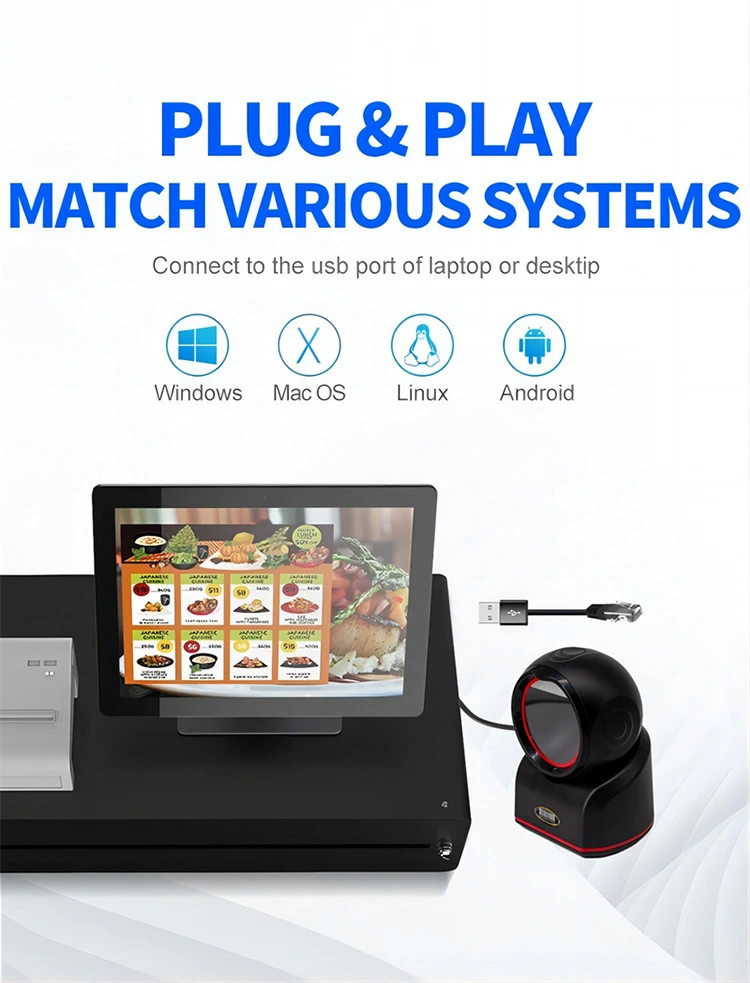 Nepogrešljivo orodje v komercialni maloprodaji in učinkovitem poslovanju blagajne je kompaktna oblika z velikim oknom za skeniranje. Operaterjem ga ni treba držati; samo poravnati morajo črtno kodo izdelka z oknom, da ga hitro prepoznajo. To operaterju sprosti roke in poveča učinkovitost skeniranja. Čitalnik črtne kode QR podpira tako avtomatsko zaznavanje kot ročni način proženja, saj je hiter, prostoročen in stabilen.